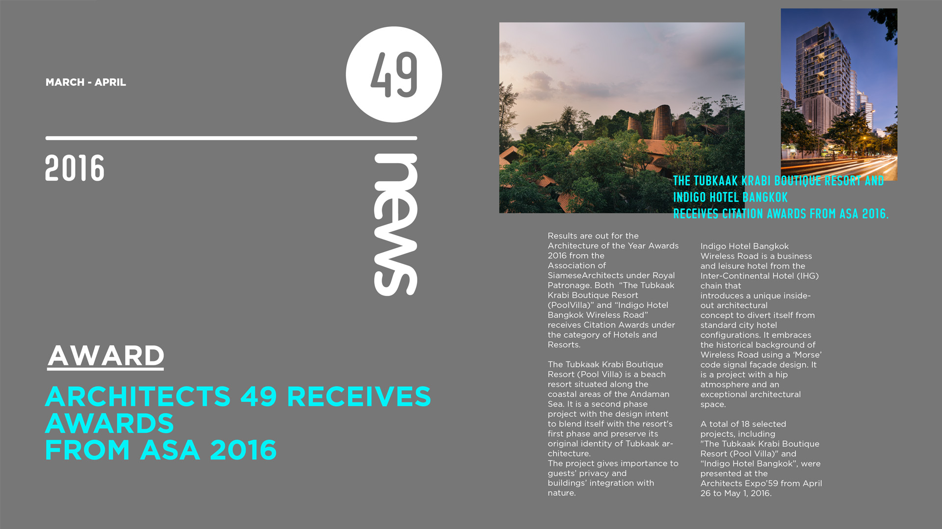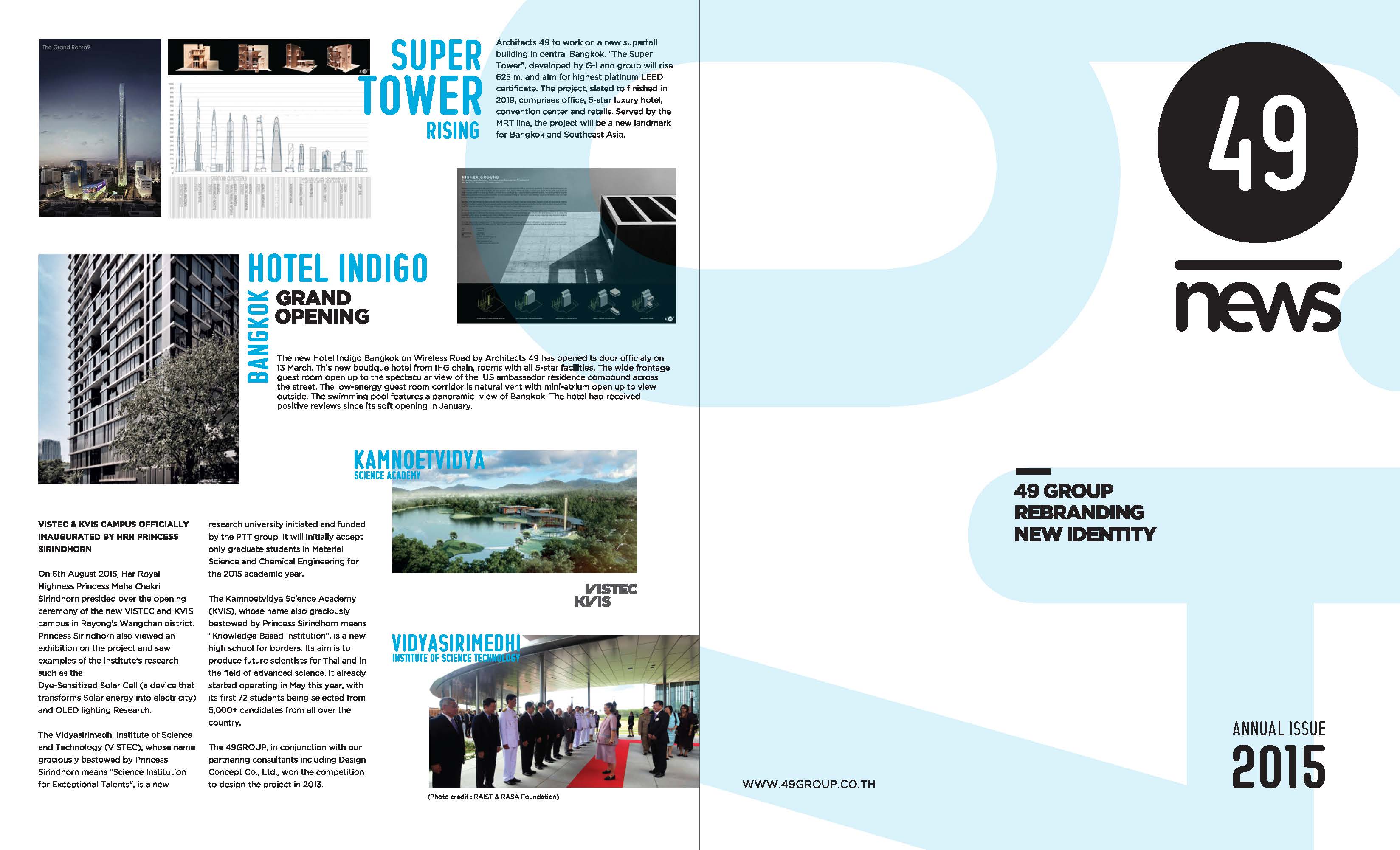 Architects 49 Limited, together with our affiliates, Architects 49 House Design Limited, Architects 49 (Chiangmai) Limited and Architects 49 (Phuket) Limited, have participated in “100 Selected Projects” exhibition at ASA Expo 2015. A49 presented the 3.8 m. high model of the Super Tower project. ASA Expo, held annually, has fast become the biggest architecture and construction material exhibition in Southeast Asia. The “100 Selected Projects” exhibition showcased models
